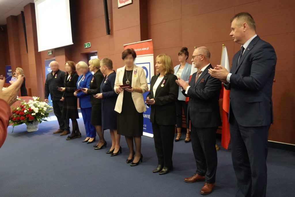 18 października w Auli Schumana Uniwersytetu Kardynała Stefana Wyszyńskiego w Warszawie podczas uroczystych obchodów Dnia Edukacji Narodowej wyróżniono nauczycieli, dyrektorów i pracowników placówek oświatowych. W wydarzeniu uczestniczyli m.in. Posłowie na Sejm RP, przedstawiciele Ministerstwa Edukacji i Nauki oraz Mazowiecka Kurator Oświaty. Odznaczenia państwowe wręczał Artur Standowicz – Wicewojewoda Mazowiecki. Jest nam niezmiernie miło poinformować Państwa, że wśród odznaczonych osób była pani Anna Gromadzka, wicedyrektor naszego przedszkola, która w Społecznym Przedszkolu Integracyjnym pracuje od 1991 roku. Pani Ani zostało wręczone odznaczenie państwowe Medal Złoty za Długoletnią Służbę. Odznaczenie to przyznawane jest przez Prezydenta Rzeczypospolitej Polskiej osobom z 30-letnim stażem pracy jako nagroda za wzorowe, wyjątkowo sumienne wykonywanie obowiązków wynikających z pracy zawodowej w służbie Państwa. Poniżej zamieszczamy List Gratulacyjny od Pani Anny Florek – Dyrektor SPI. O uroczystości można przeczytać również na stronach Kuratorium Oświaty w Warszawie. Opis medalu zajdziecie Państwo na stronie Prezydenta Rzeczpospolitej Polskiej. Bardzo się cieszymy i serdecznie gratulujemy!