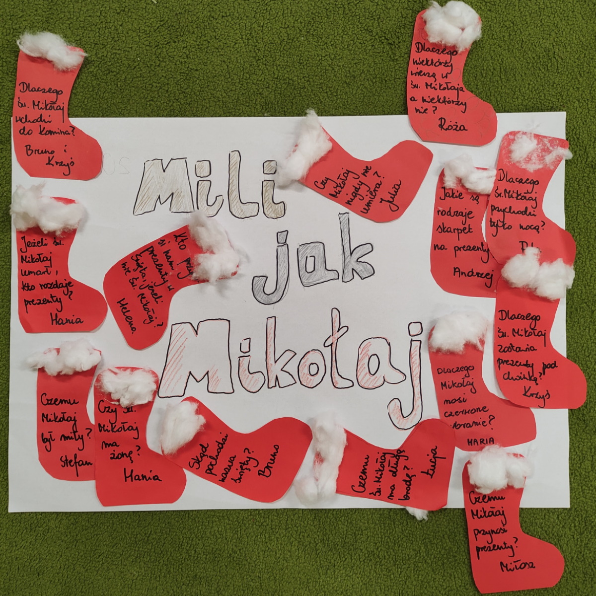 W najbliższym czasie zerówka zajmie się tematem Mili jak Mikołaj. Najstarsze przedszkolaki będą sprawdzać skąd wzięły się Mikołajki ale przede wszystkim skupią się na tym, jak być miłym dla innych oraz jak można obdarować innych bez kupowania czegoś.