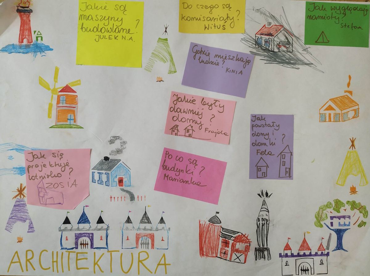 Przed nami odpowiedzi na mnóstwo ciekawych pytań z różnych dziedzin. Będzie o domach, namiotach i innych budowlach. Czekają nas rozważania dotyczące emocji i świata zwierząt. Najstarsze przedszkolaki wybrały w głosowaniu temat swoich zajęć. Najwięcej głosów uzyskała propozycja łącząca „Sztukę” oraz „Wiosnę”. Podczas czwartkowej wycieczki do Mediateki zerówkowicze odnajdą wiele odpowiedzi na swoje pytania.