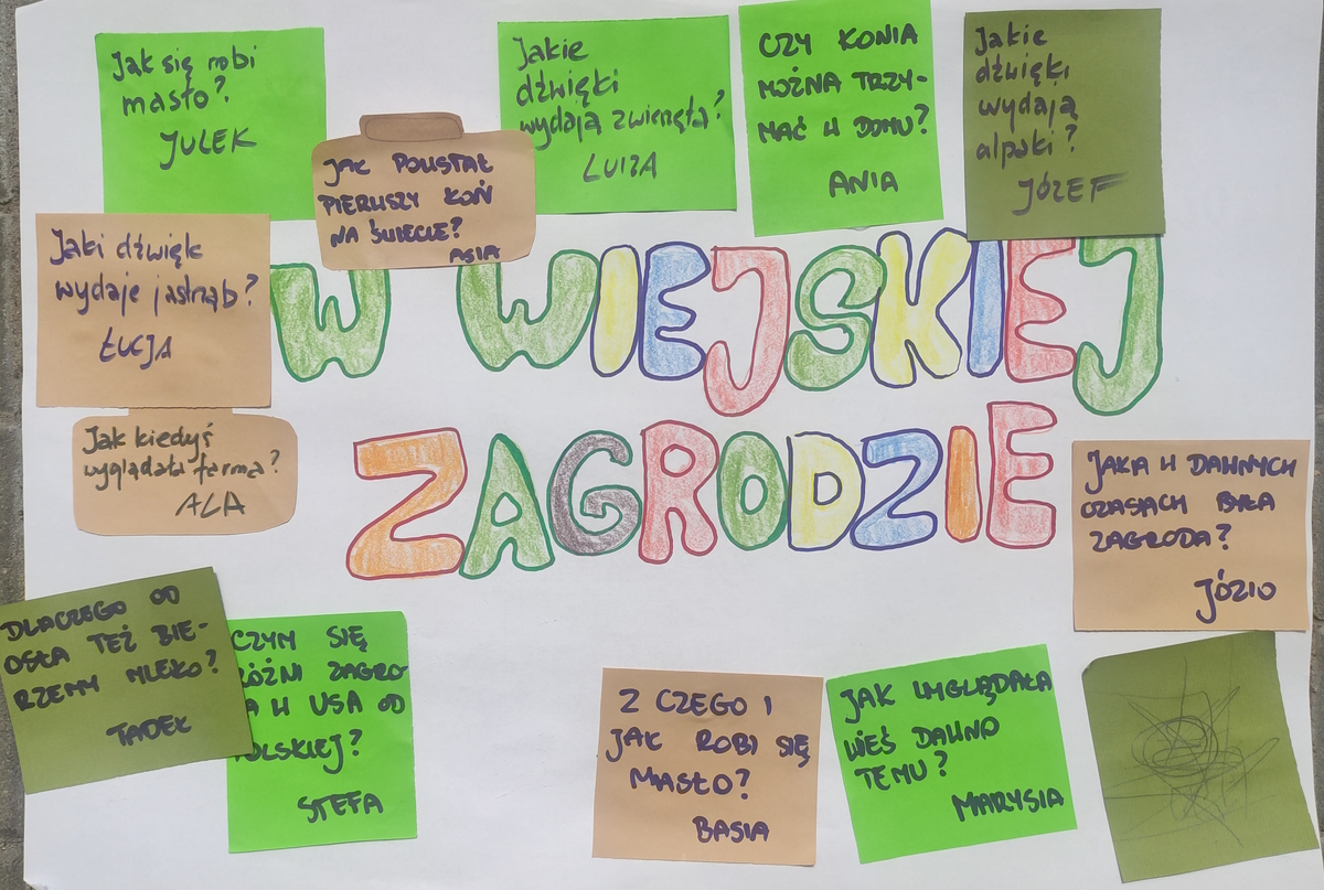 • grupa 0 zadała pytania na temat: W wiejskiej zagrodzie