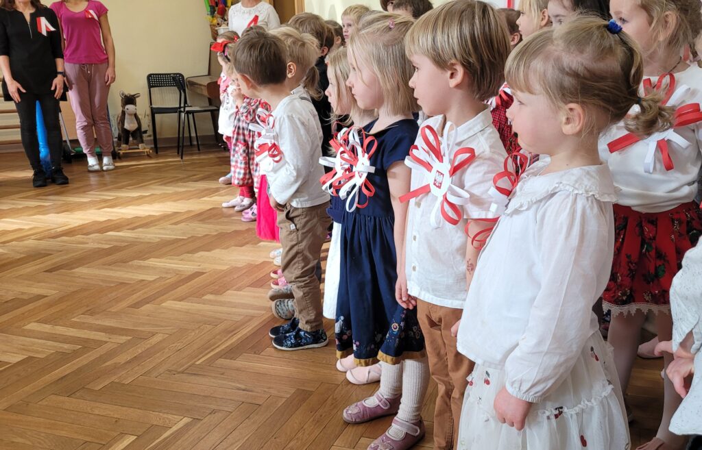 Dziś nasze przedszkole przyłączyło się do akcji organizowanej przez MEN „Szkoła do hymnu”. O symbolicznej godzinie 11:11 wszyscy – dzieci, nauczyciele i inni pracownicy naszego przedszkola, uroczyście zaśpiewali „Mazurka Dąbrowskiego”. To była bardzo podniosła, wzruszająca chwila. Nasze przedszkolaki wspaniale prezentowały się w strojach galowych oraz narodowych barwach i pięknie odśpiewały hymn.