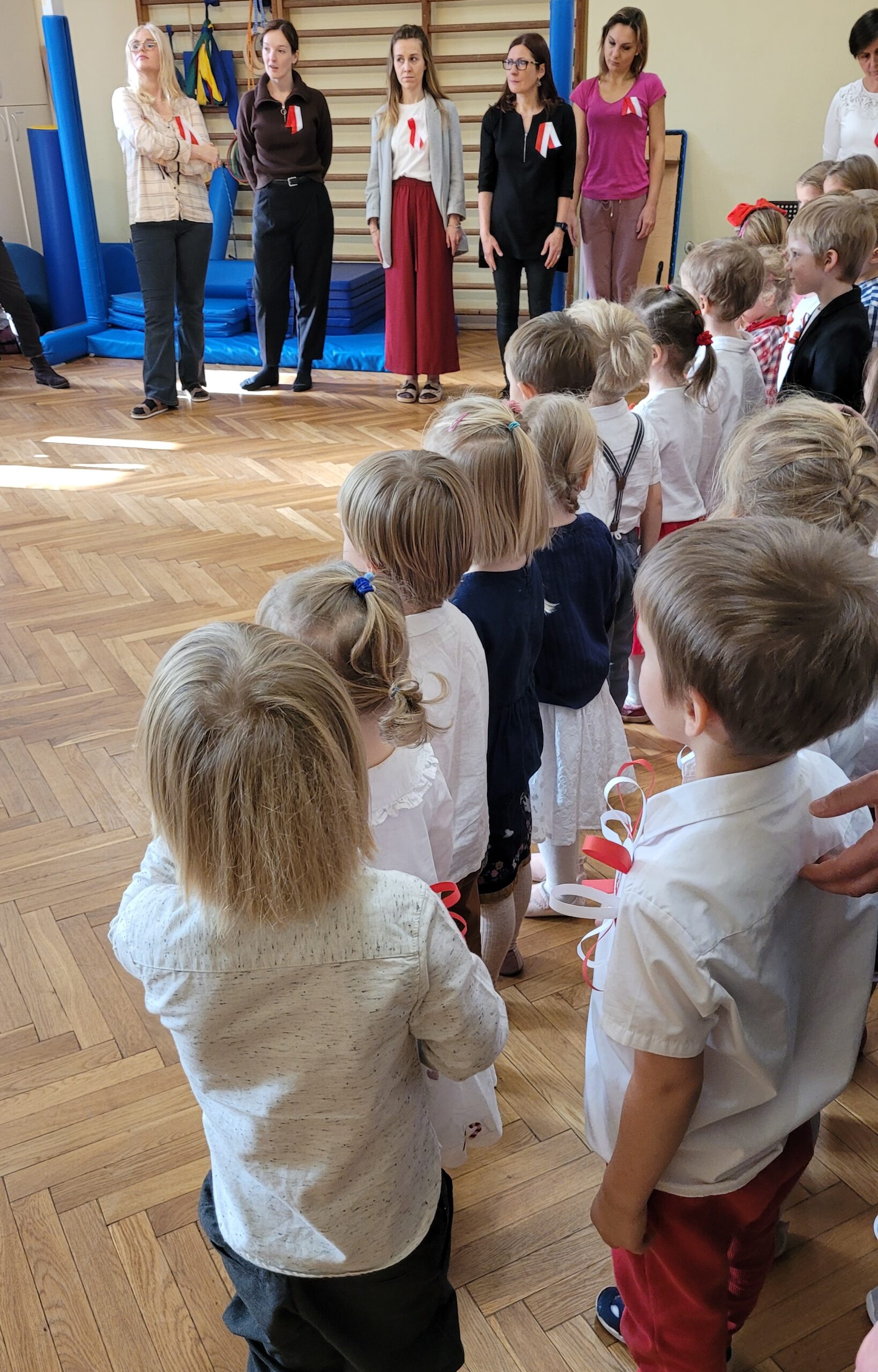 Dziś nasze przedszkole przyłączyło się do akcji organizowanej przez MEN „Szkoła do hymnu”. O symbolicznej godzinie 11:11 wszyscy – dzieci, nauczyciele i inni pracownicy naszego przedszkola, uroczyście zaśpiewali „Mazurka Dąbrowskiego”. To była bardzo podniosła, wzruszająca chwila. Nasze przedszkolaki wspaniale prezentowały się w strojach galowych oraz narodowych barwach i pięknie odśpiewały hymn.